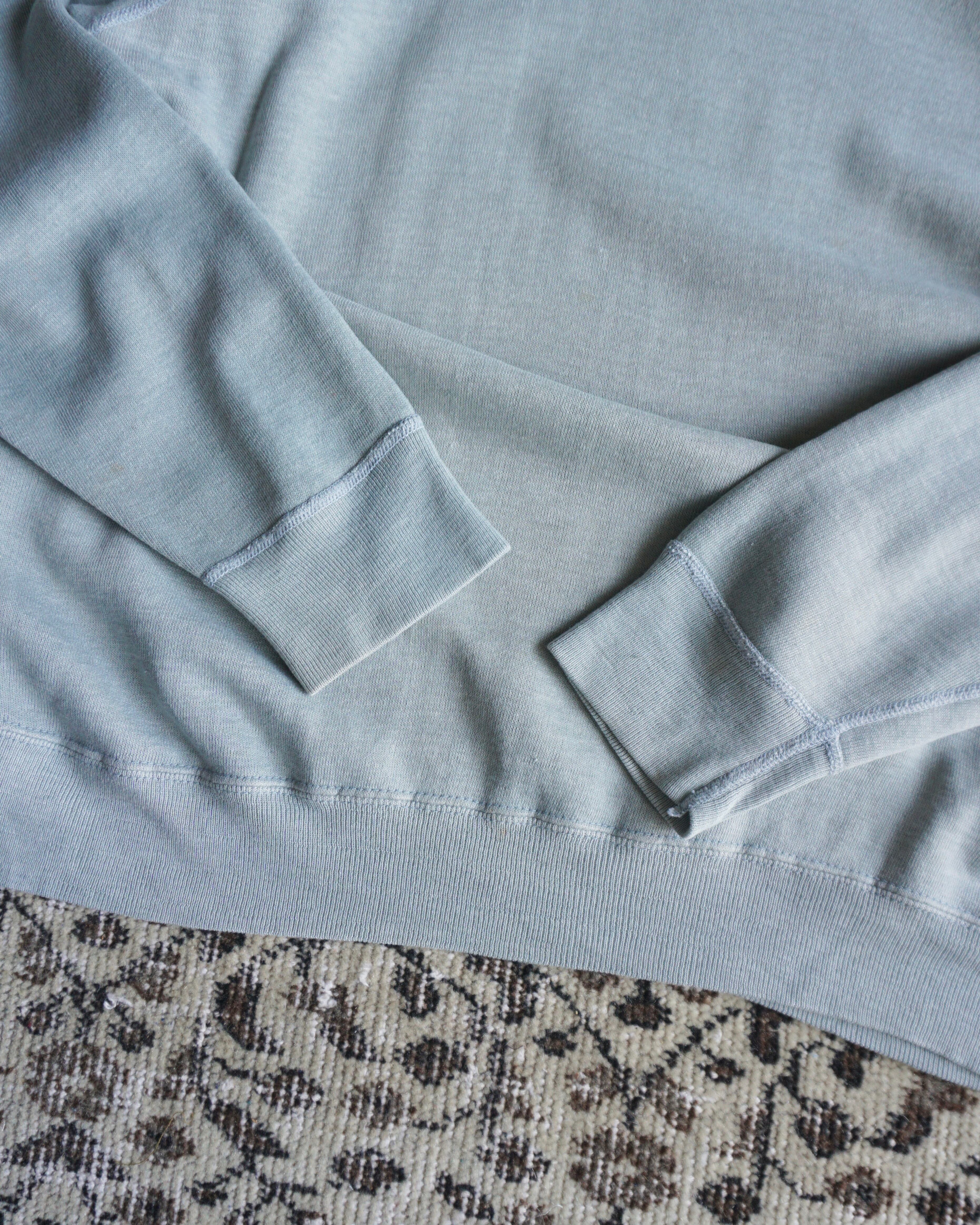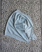 縮み無しぐらいのサイズで、グレーと水色の間のかすれたような色。