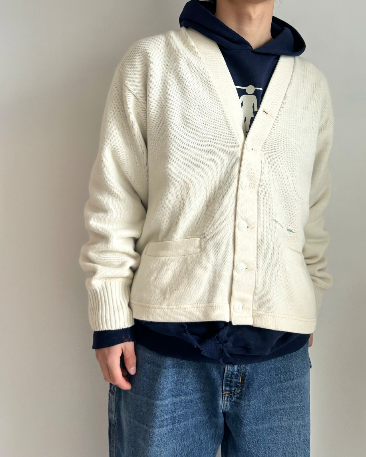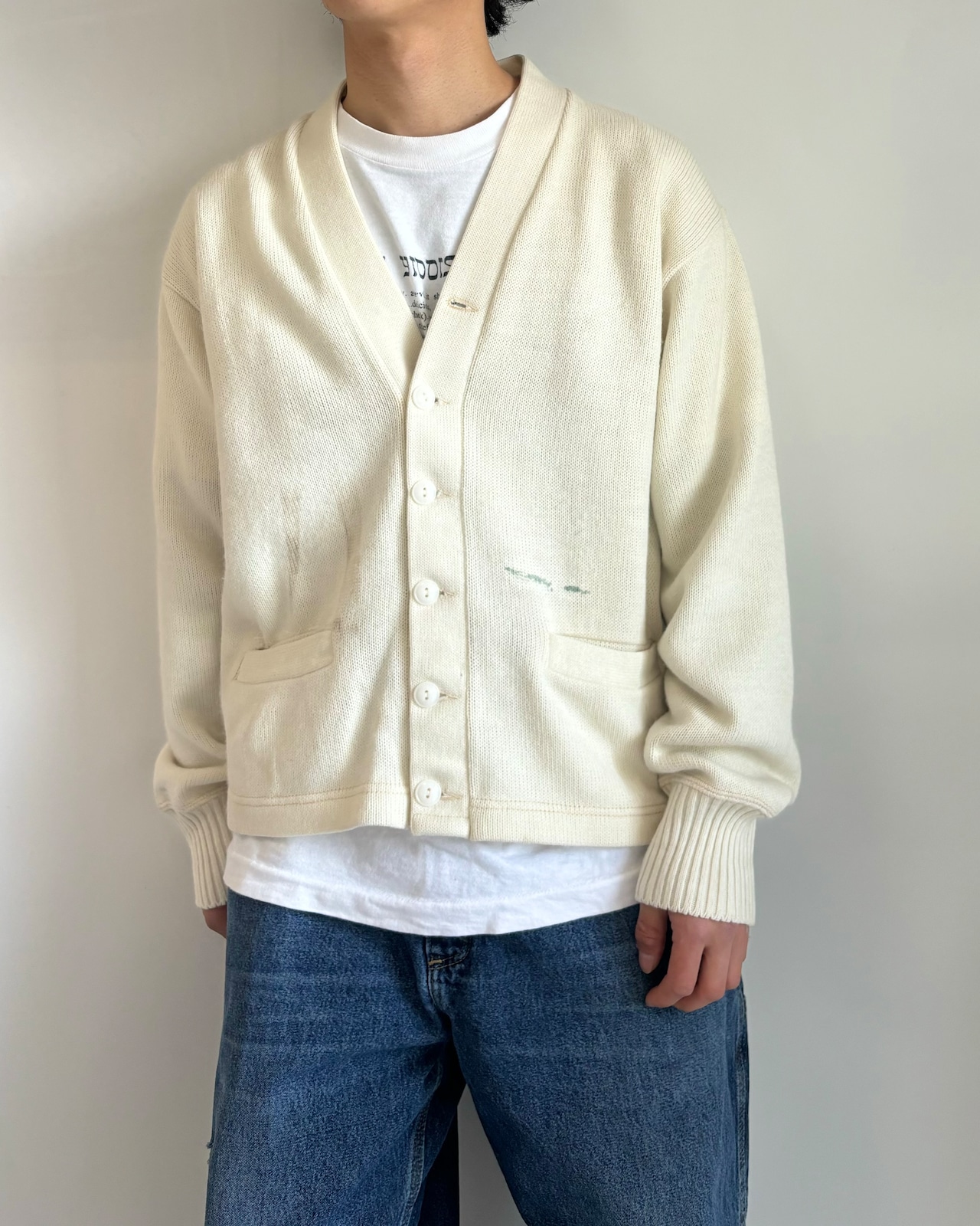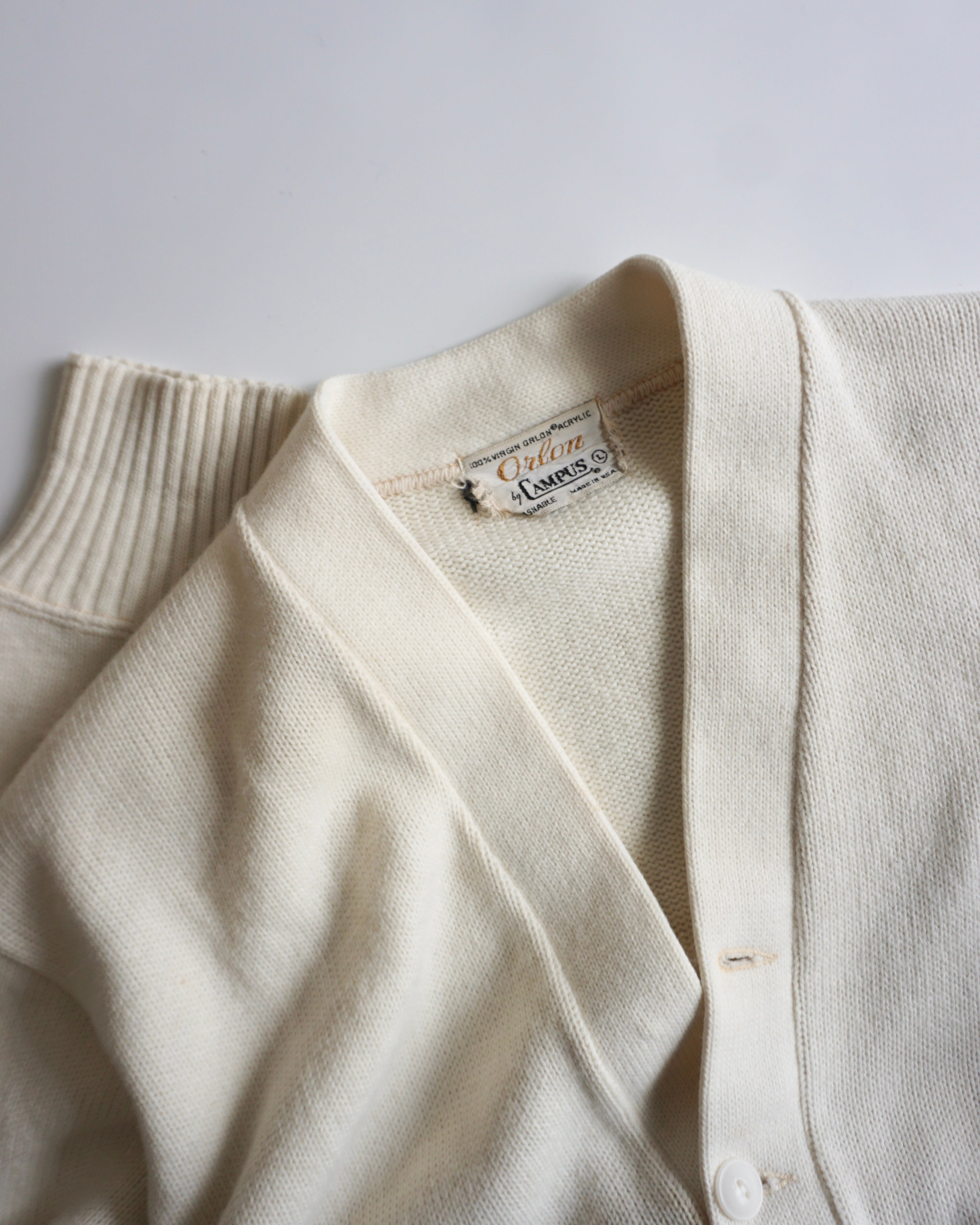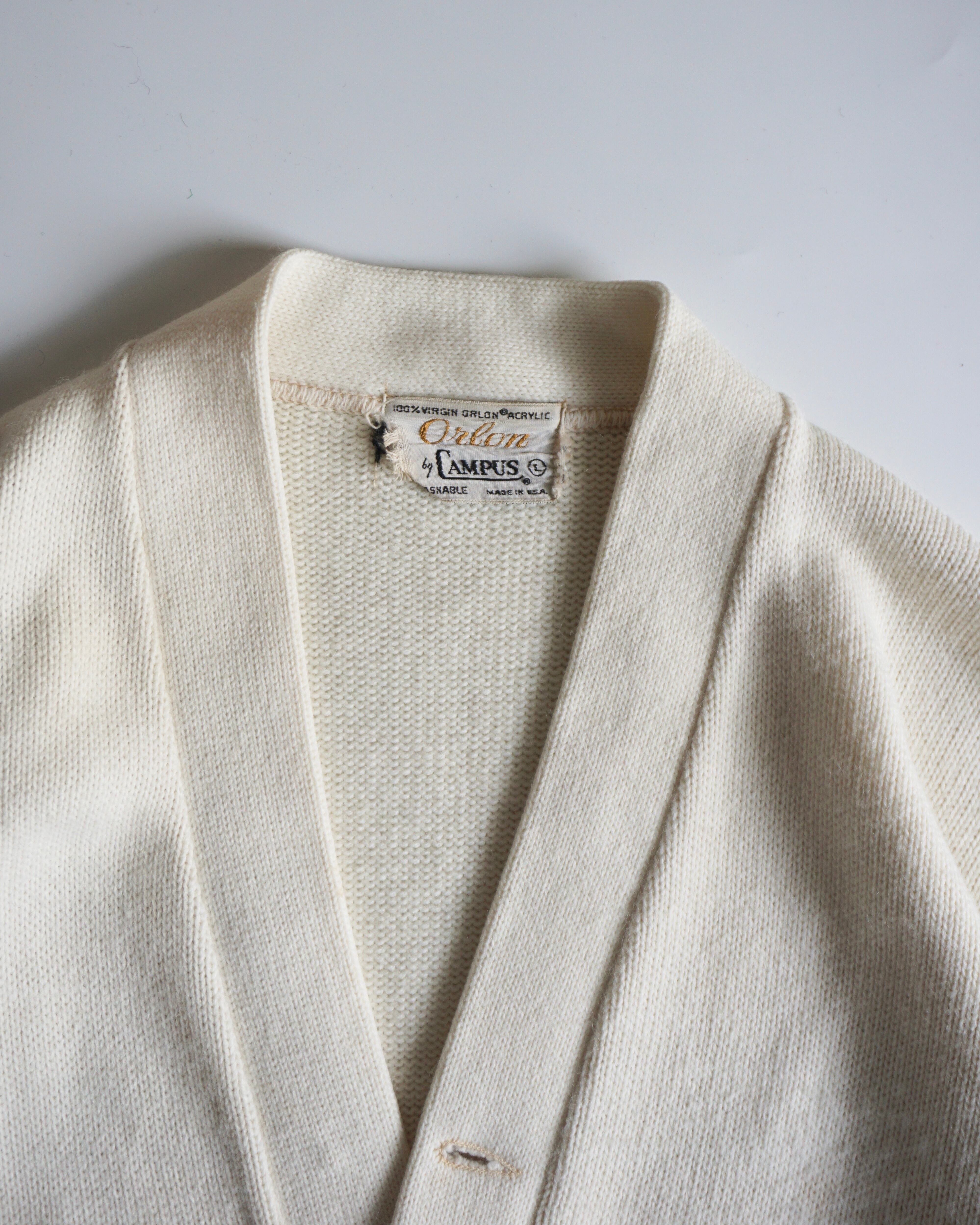 古いタグがつくアクリルカーディガン。